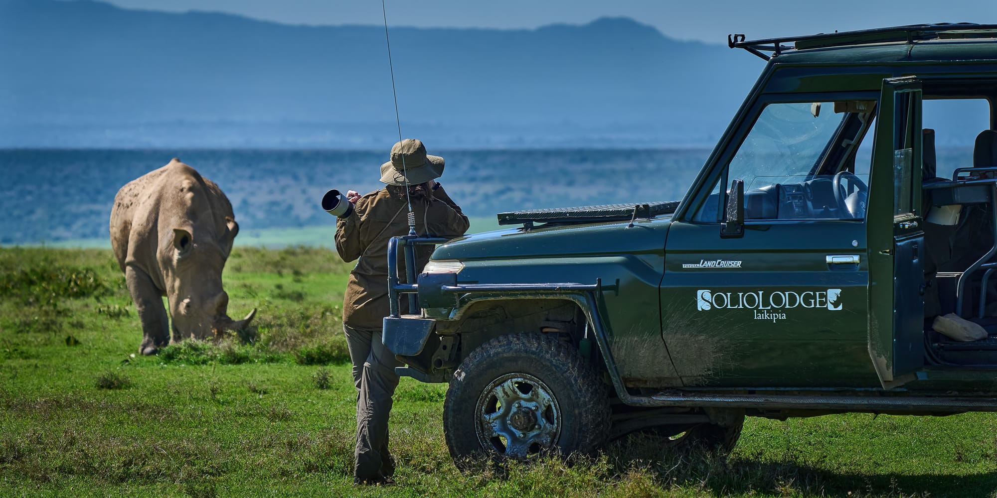 In a rare moment at Kenya's Solio Reserve, I captured something more precious than perfect rhino portraits—my fellow photographer Corey, not shooting but simply watching. This unguarded moment reveals the true heart of wildlife photography: the experience itself.